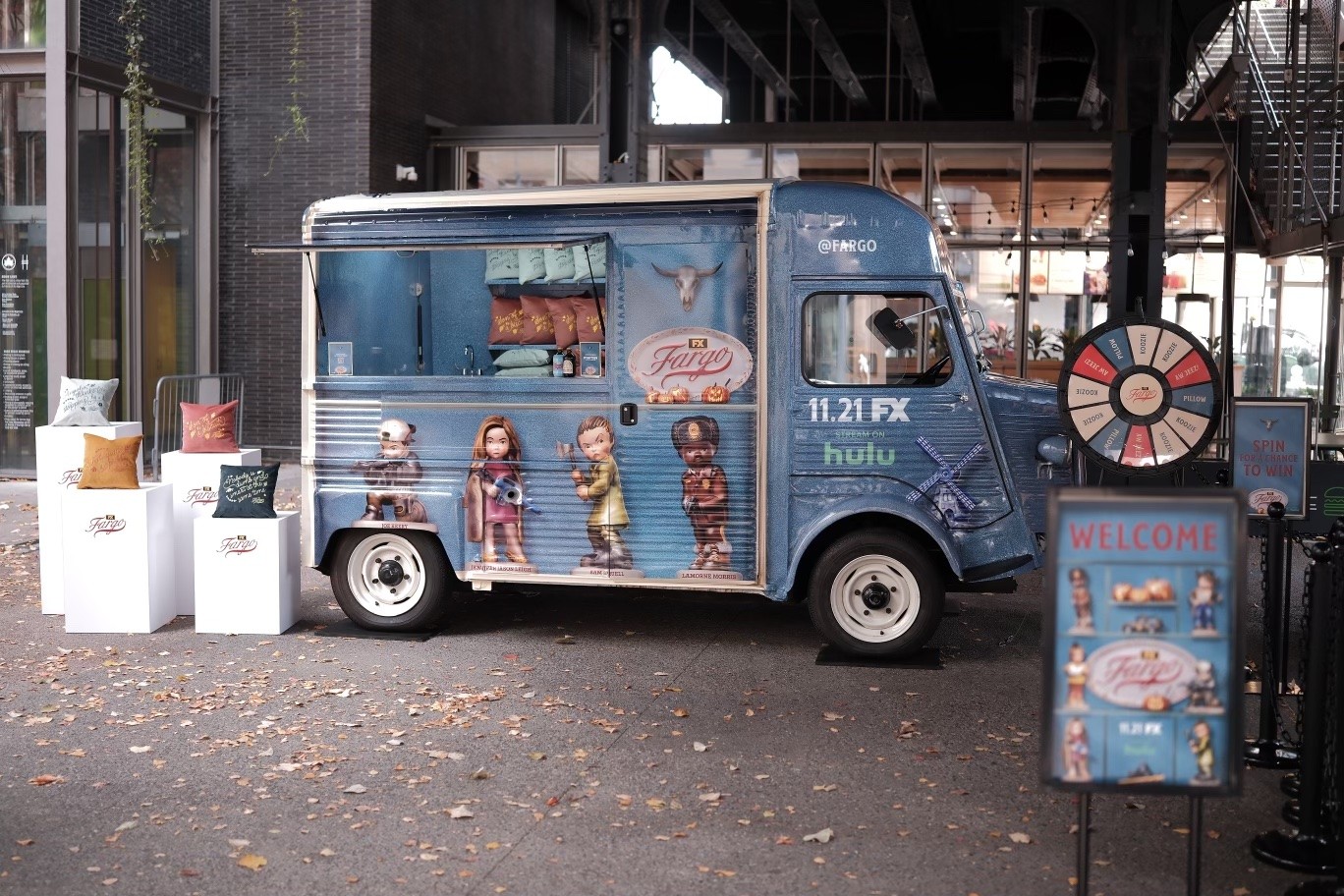 To celebrate the return of FARGO for Season 5, we hit the streets of NY and LA with a custom-branded truck that rewarded fans, new and old, with exclusive show merch. Guests were able to spin for their chance to win a delectable coffee treat, custom knitted Fargo koozie, or limited-edition Fargo pillow—complete with darkly witty quotes from the show itself. The Pillow Talk Pop-up was appealed to fans and casual viewers nationwide, garnering 76M+ aggregated impressions.